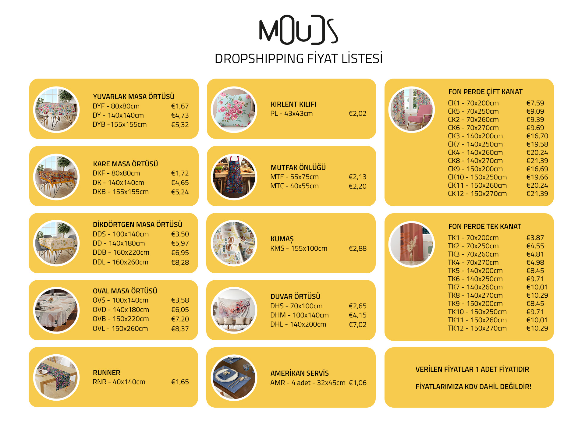 Moud's olarak, ev tekstili ürünlerinde yenilikçi ve estetik çözümler sunuyoruz. Dijital tasarımlı ve çok renkli ürünlerimizle evinize şıklık katmayı hedefliyoruz. Masa örtüsü, perde, kırlent kılıfı, runner ve mutfak önlüğü gibi ürünlerimiz, yüksek kalite standartlarına uygun olarak üretilmektedir. Avrupa ve Amerika pazarlarına toptan satış hizmeti sunan firmamız, aynı zamanda diğer ev tekstili firmalarına kendi markaları altında özel üretim imkanı sağlamaktadır.